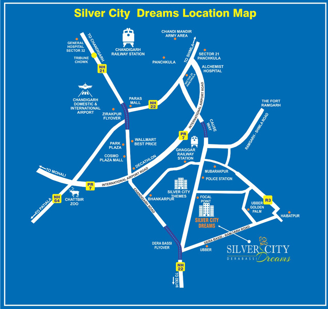Silver City Dreams, A mega township spread in across 10.85 acres. Located at the finest address in Dera Bassi on Mubarikpur-Dera Bassi Road, Sector 5, SAS Nagar Mohali Silver City Dreams a township defined by greenery & wide open space.